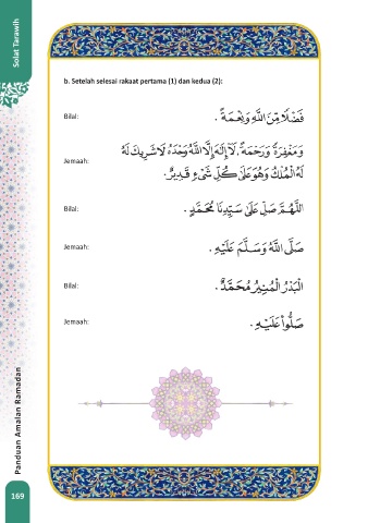 Solat Tarawih b. Setelah selesai rakaat pertama (1) dan kedua (2): Bilal: Jemaah: Bilal: Jemaah: Bilal: Jemaah: Panduan Amalan Ramadan 169