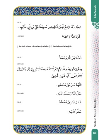 Solat Tarawih Bilal: Jemaah: j. Setelah selesai rakaat ketujuh belas (17) dan kelapan belas (18): Bilal: Jemaah: Bilal: Jemaah: Panduan Amalan Ramadan Bilal: Jemaah: 178