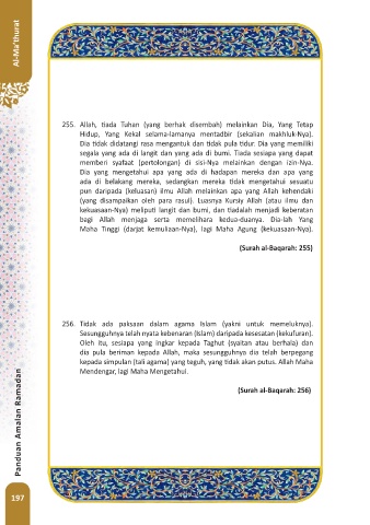 255. Allah, tiada Tuhan (yang berhak disembah) melainkan Dia, Yang Tetap